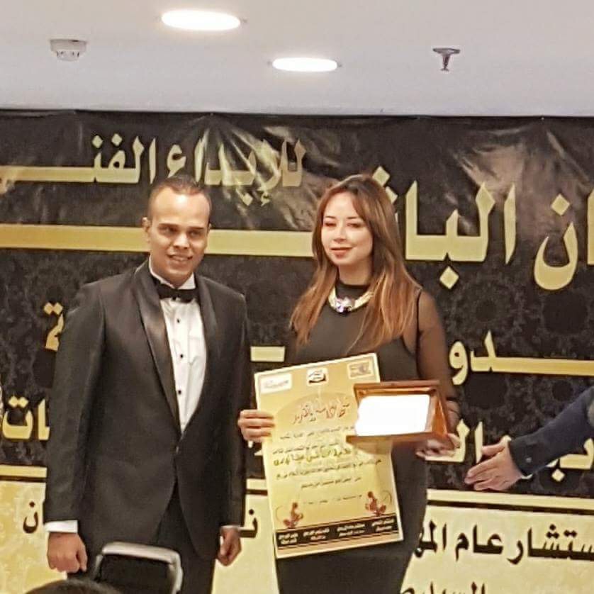 وقام بتسليم درع التكريم وشهادة التقدير لنانسى شادى الباشا رئيس المهرجان .