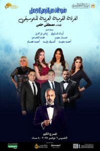 ايناس عز الدين ، ايات فاروق ، هند النحاس ، منار سمير ، احمد عصام ، اشرف وليد ، احمد سعيد ويقدمون باقه من اغانى الزمن الجميل كوكب الشرق أم كلثوم العندليب عبدالحليم حافظ فريد الاطرش محمد فوزى فيروز وغيرهم من نجوم الزمن الجميل الجدير بالذكر ان المايسترو مصطفى حلمى قاد أقوى حفلات مهرجان الموسيقى العربيه فى دورته ال 33 منها حفل أمير الغناء العربى هانى شاكر وحفل الختام للمطربة المتميزة سوما والمطرب الكبير صابر الرباعى