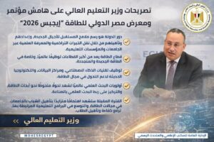 ونيابة عن الوزير محمد عبداللطيف وزير التربية والتعليم والتعليم الفني ، أكد الدكتور أيمن بهاء الدين، نائب الوزير ، أن مؤتمر “إيجبس 2026” يجسد طموح مصر في أن تكون مركزًا إقليميًا وعالميًا للطاقة، ومنصة تجمع العقول والخبرات لصياغة مستقبل أكثر استدامة وابتكارًا.