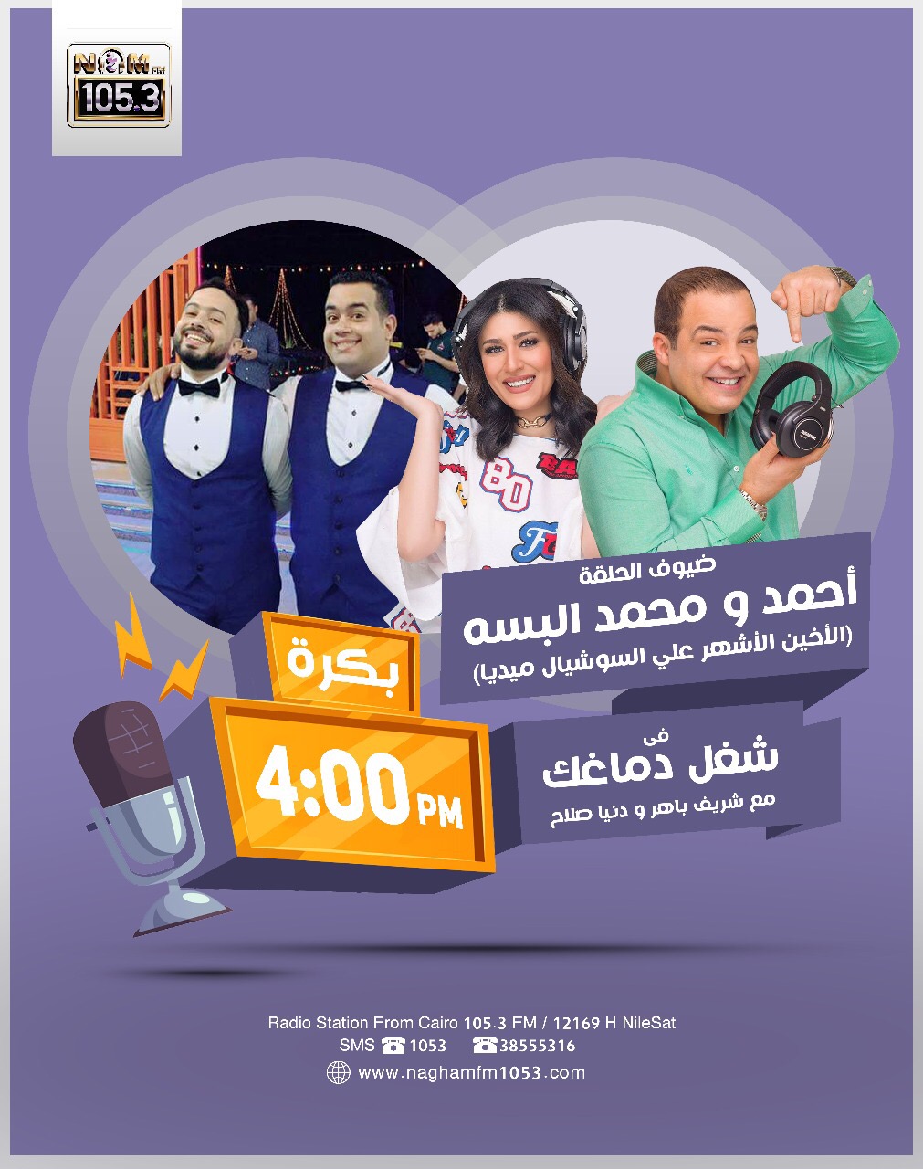 يستضيف اليوم برنامج “شغل دماغك” والذى يقدمه كل من شريف باهر و دنيا صلاح على إذاعة نغم اف ام فى الرابعة عصرا، لأول مرة الاخوين الاشهر علي سوشيال ميديا اصحاب فيديو اغنية “يلا نفرق لمتنا”، والتي حصد أكثر من 2 مليون مشاهدة في أول ساعات له علي السوشيال ميديا.