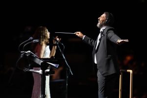 قال المايسترو العالمى هاني فرحات، الذي قاد الأوكسترا خلال الحفل: هناك تناغم وتفاهم كبير بيني وبين أنغام، وهذا التناغم يصل أثره فورا إلى الجمهور، الذي يتوق دائما لحفلاتنا معا.