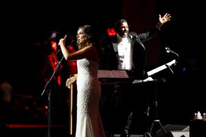 وحرصت أنغام خلال الحفل على تقديم التحية لصناع أحدث ألبوماتها الغنائية “تيجي نسيب”، الذين حضر بعضهم الحفل، ومنهم الملحن إيهاب عبد الواحد، والفنان أكرم حسني، والملحن عزيز الشافعى والشاعر أمير طعيمه والملحن محمود خيامى والموزع الموسيقى طارق مدكور إلى جانب توجيه التحية للملحن الراحل رياض الهمشري، الذي تضمن ألبومها الجديد أغنية من ألحانه هي و”بقالك قلب”.