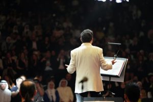 وصعد هاني شاكر على المسرح برفقة فرقته الموسيقية على أنغام أغنيته «فينك من بدري»، ثم رحب بالحضور وعبر عن سعادته بالغناء في الكويت.