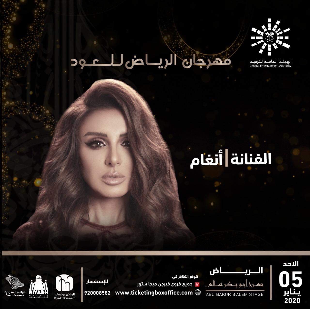وصلت مساء اليوم إلى الرياض مطربه مصر الأولى والوطن العربى أنغام بمصاحبه مديره أعمالها راندا رياض لأحياء حفل جماهيرى كبير غداً بالرياض صمن حفل سمرات شتاء الرياض بمحميه الملك خالد الملكية بمشاركه المطرب الكويتى الكبير عبدالله الرويشد والفنانة اللبنانيه مريام فارس كمى تحيى أنغام حفلاً كبيراً يوم 5 يناير بمهرجان الرياض للعود بمسرح أبوبكر سالم بمصاحبه المايسترو العالمى هانى فرحات …